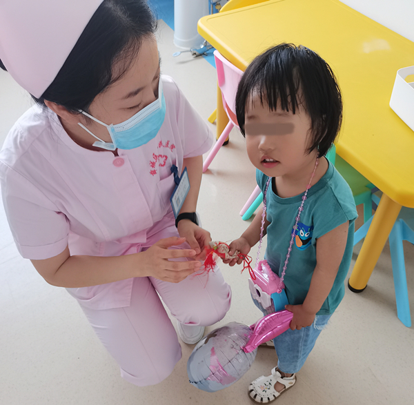 为了让生病的小朋友们也能开心过“六一”,儿科医护人员在繁忙工作之余,精心制作了中药香包,还准备了气球等精美礼物,并送到每一个住院和就诊小朋友手上,同时送上美好的祝福。