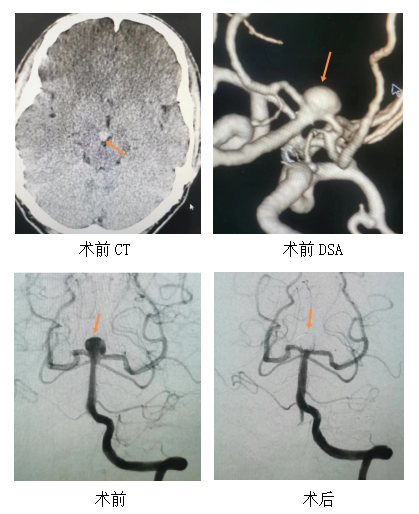 2月23日,颅内基底动脉瘤患者王先生,在神经外科行介入栓塞术后第4天康复出院。出院时无任何不适,对治疗效果非常满意。该病例为我院首例后循环基底动脉瘤介入栓塞术。患者王先生,48岁,于2月17日因头晕20余天就诊。经头颅CTA检查证实为基底动脉瘤。该患者动脉瘤位于基底动脉顶端,且体积较大,极易发生破裂出血,一旦破裂出血危险极高,甚至危及生命。入院后,经紧张、有序的术前准备,在科主任袁玉麟的协调下,在介入导管室、麻醉与围术期医学科共同努力下,手术于2月19日顺利完成。此次手术方式为支架辅助弹簧圈栓塞术,创伤小、恢复快、安全性高。颅内动脉瘤作为危害人类健康的重大疾病之一,一旦破裂死亡率极高,一般初次出血死亡率达30%,再次出血死亡率高达60-70%,因此一旦检查发现脑动脉瘤,尤其是高危动脉瘤,建议选择介入栓塞或开颅夹闭术积极进行手术治疗。